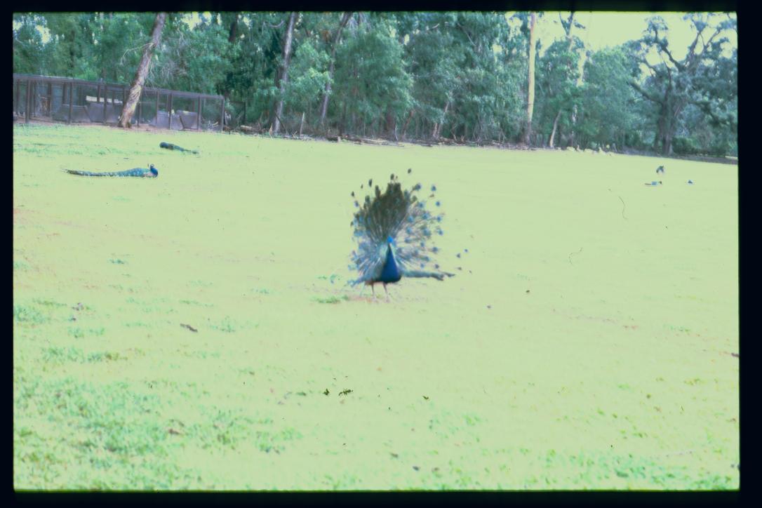 peacocks in bike shed