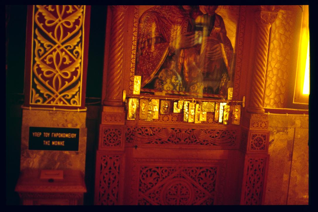 Griechenland 1992/Organisiert ueber Gymnasium Waidhofen.Thaya/Mag. Gut, Mag. Poeppl et al/Orthodoxe Kirch/orthodox church/Votivbild mit Votivgaben