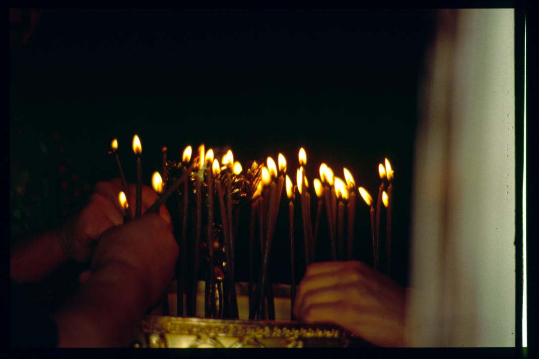 Griechenland 1992/Organisiert ueber Gymnasium Waidhofen.Thaya/Mag. Gut, Mag. Poeppl et al/Votivkerzen/devotional candles(?)
